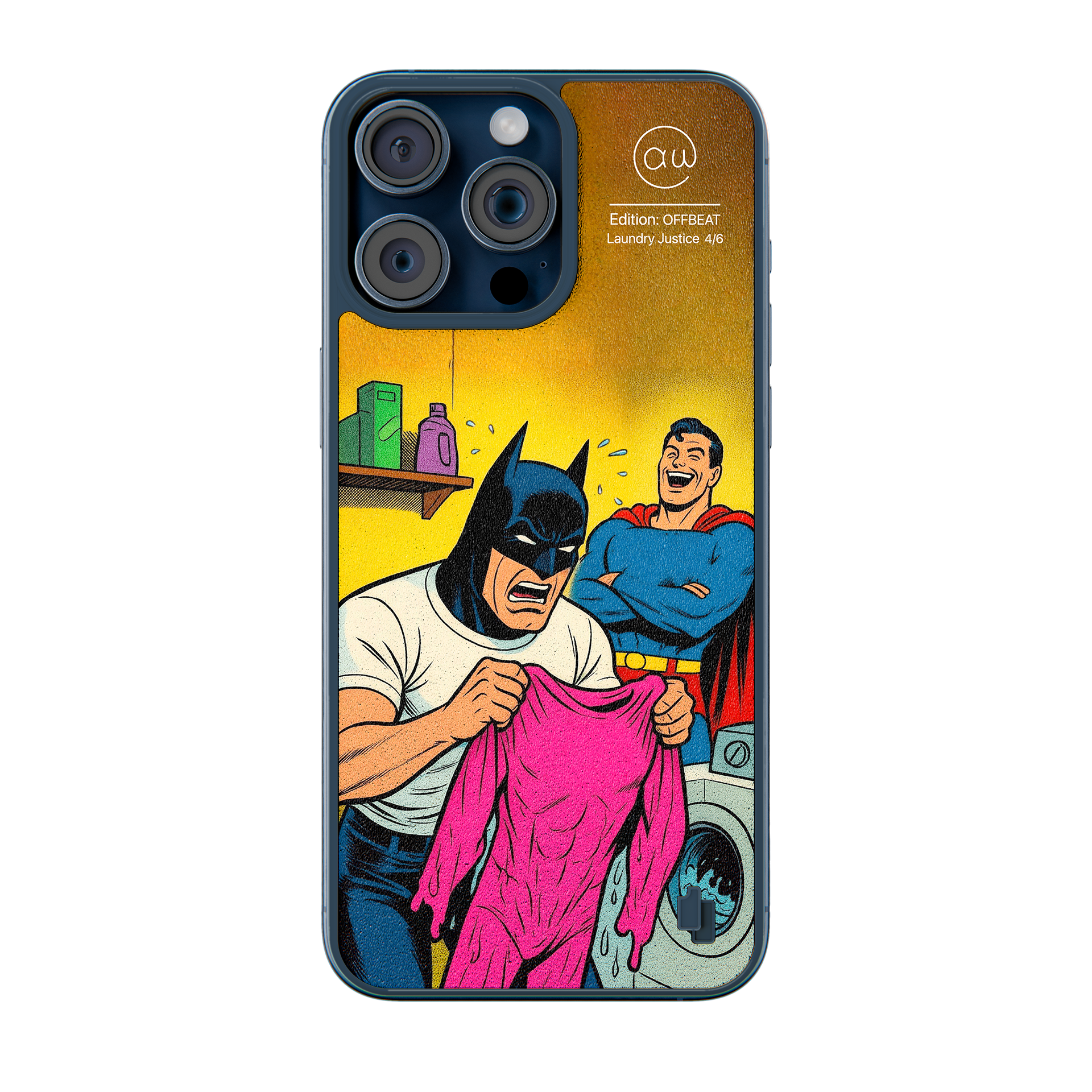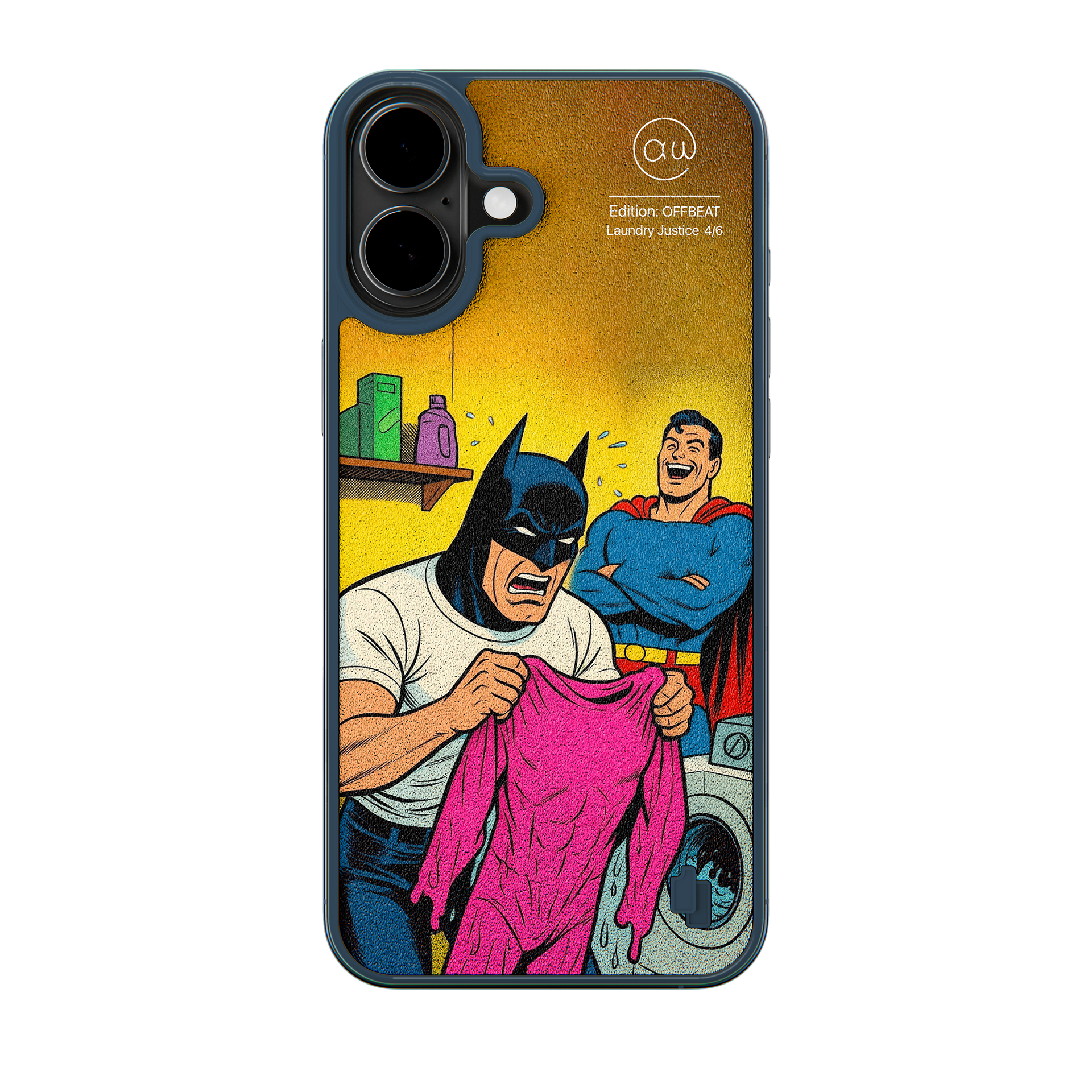 Selbst Helden färben mal mit.Wenn Batman rosa sieht und Superman sich kringelt. Eine Hommage an Superkräfte, Schwächen – und verdammt falsche Waschprogramme.